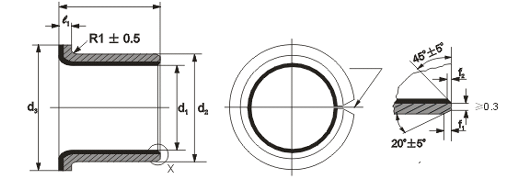 1.改性聚四氟乙烯( PTFE)以及铅(Pb)的 混合物 0.01~0.03mm,一种耐磨材料,运作过程中可形成转移膜以保护对磨轴。 2. 铜粉层0.2~0.30mm提高PTFE/Pb与钢板的结合强度,具有很好的承载能力和耐磨性。同时铜又是一种很好的导热材料,可快速转移轴承运作过程中产生的热量。 3. 低碳钢0.7~2.3mm,提高轴承的承载能力和热转移作用。 4. 铜/锡电镀层,铜镀层0.008mm,锡镀层0.005mm,使轴承有很好的耐腐蚀功能。 | |